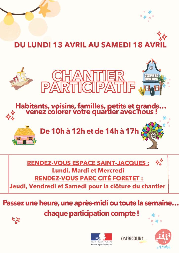 Rendez-vous du 13 au 18 avril, soit à l’espace Saint-Jacques, soit à la Cité Foretet, pour une heure ou pour une journée !
