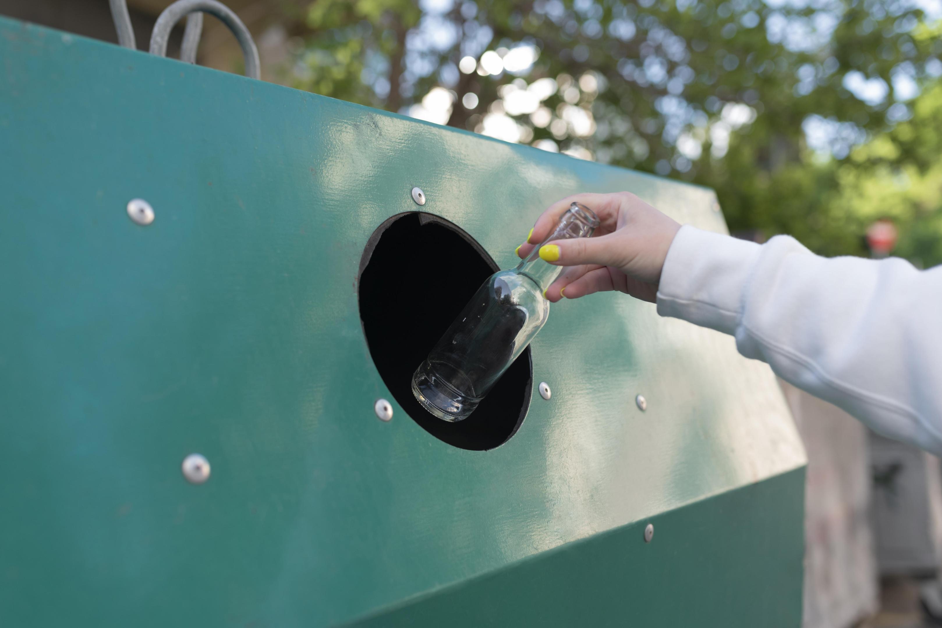 Le verre doit être déposé dans les points d'apport volontaire disponibles sur la commune. Pour rappel, vous devez retirer les bouchons et couvercles des bouteilles et bocaux avant de les jeter. Il est interdit de jeter vos sacs en plastique, capsules et couvercles au pied du conteneur.